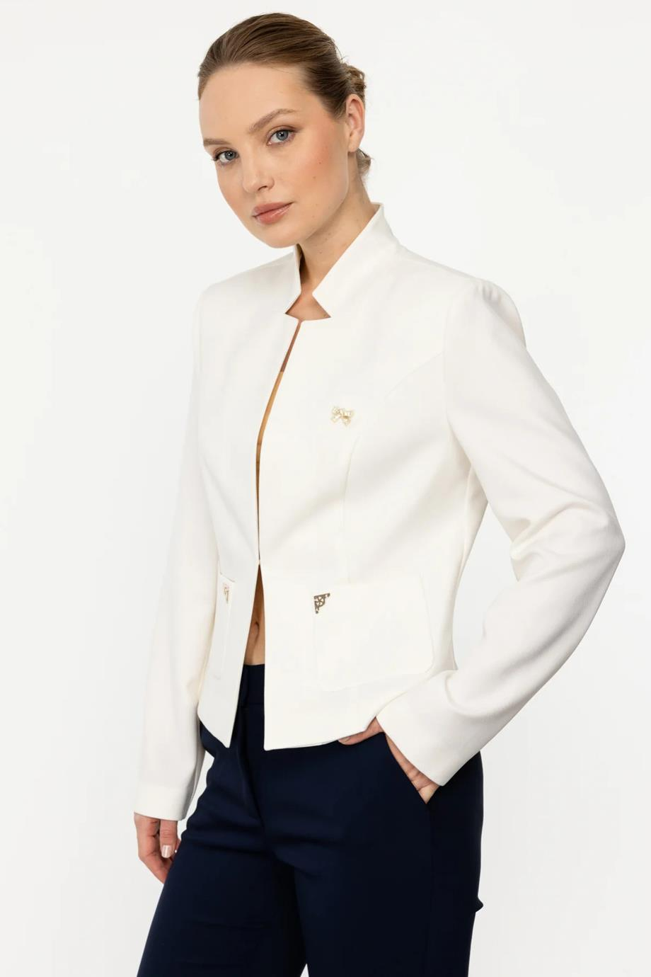 Dik Yaka Cepli Ekru Kadın Ceket 5146-2Y4 (P-0000000029260)